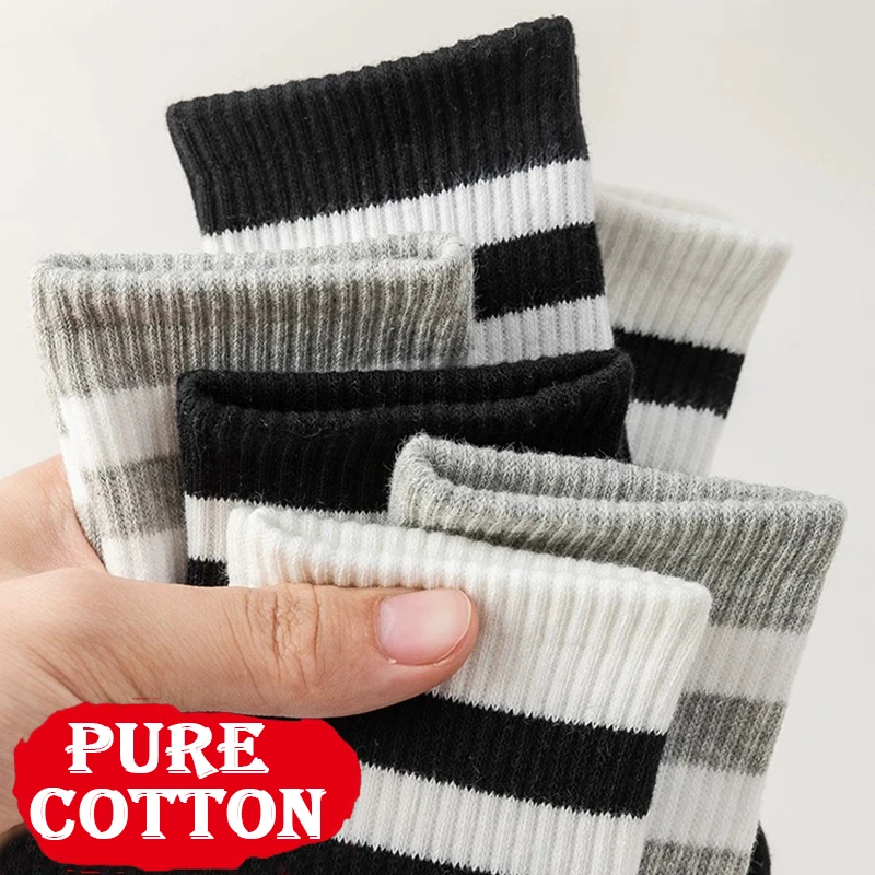 Chaussettes à rayures pour femmes – Coton doux, respirantes et chaudes – Noires, automne/hiver