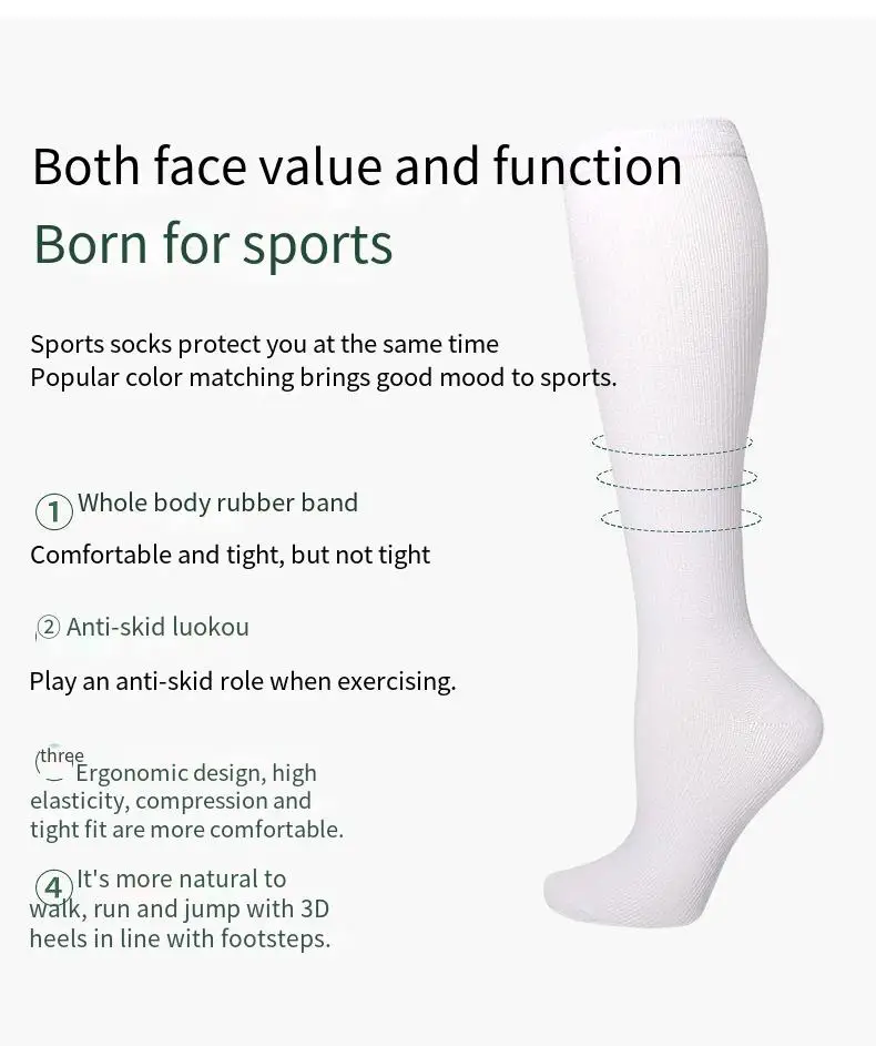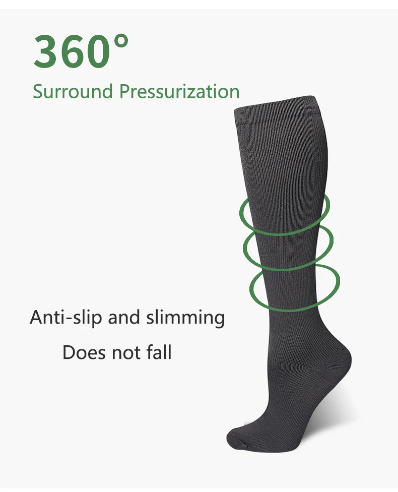 Ces chaussettes de compression unisexes sont conçues pour accompagner vos efforts, que ce soit lors d’une randonnée, d’un footing matinal ou d’un long vol en avion. Grâce à leur tissu élastique et respirant, elles favorisent la circulation sanguine tout en maintenant vos mollets au sec et soutenus.