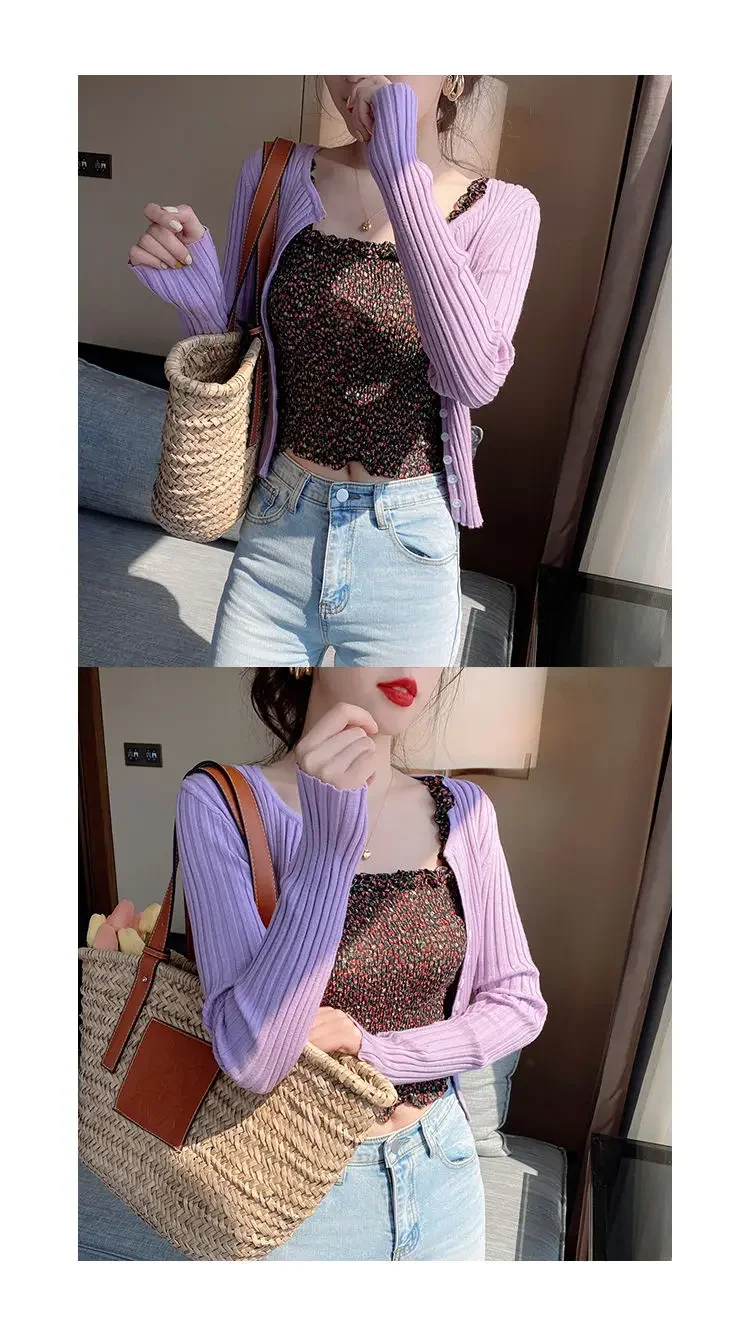 Pull Femme Col V – Cardigan d’Été Tricoté Violet Taro | Léger & Tendance