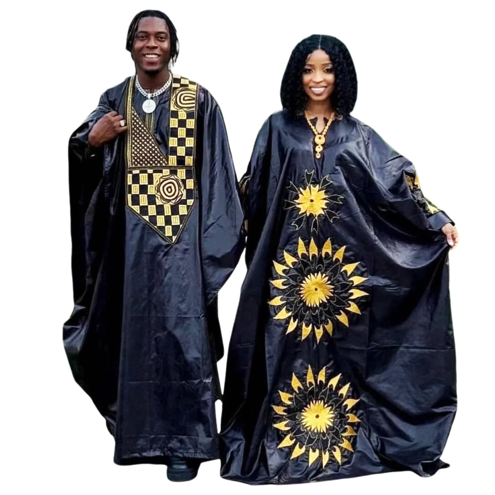 Robes Africaines pour Couples – Tenues Traditionnelles Brodées en Bazin, Longueur au Sol