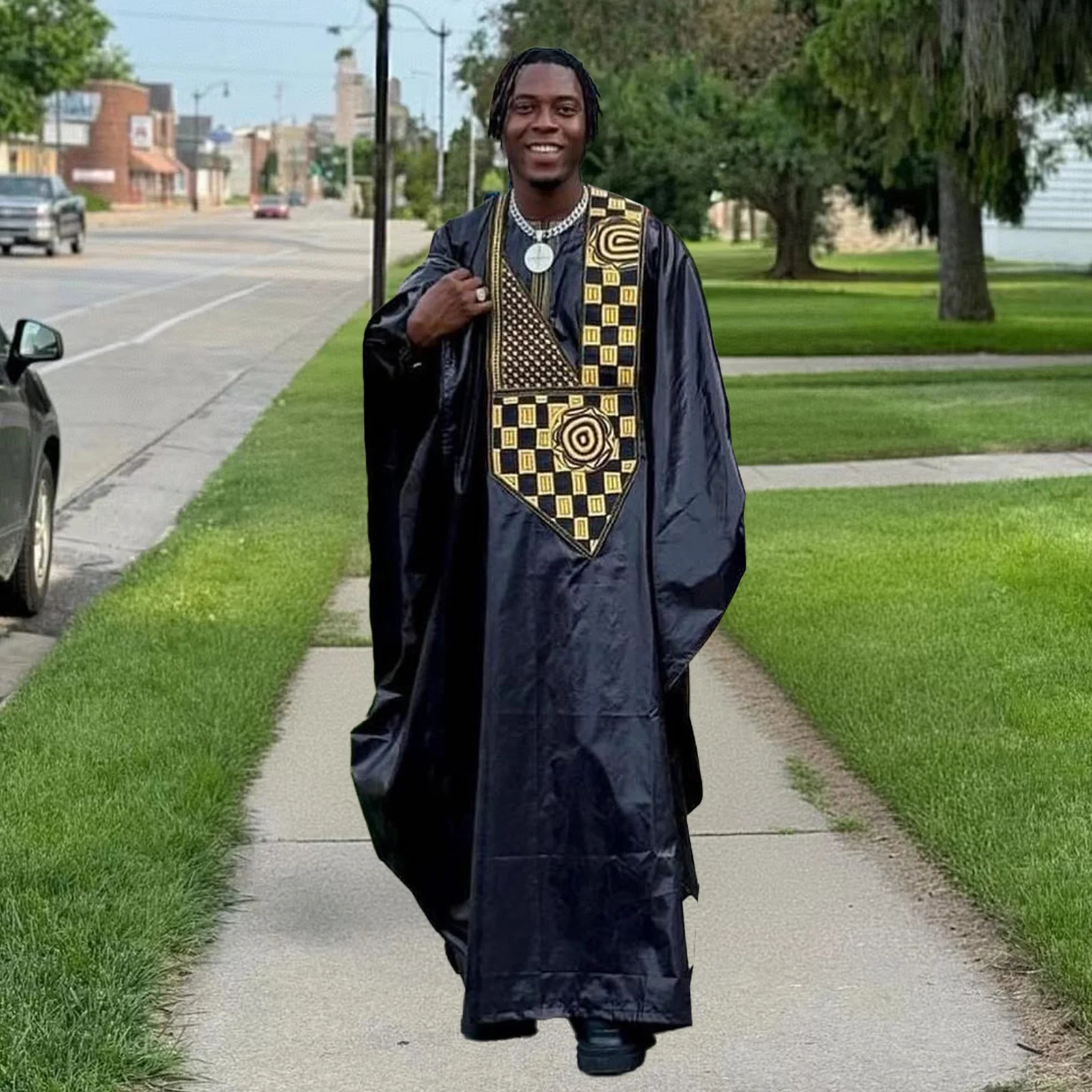 Plongez dans la richesse du style africain avec cet ensemble assorti pour couples. Chaque robe longue pour femme est confectionnée en bazin riche et brodée avec soin, accompagnée d'une tenue homme parfaitement coordonnée.
